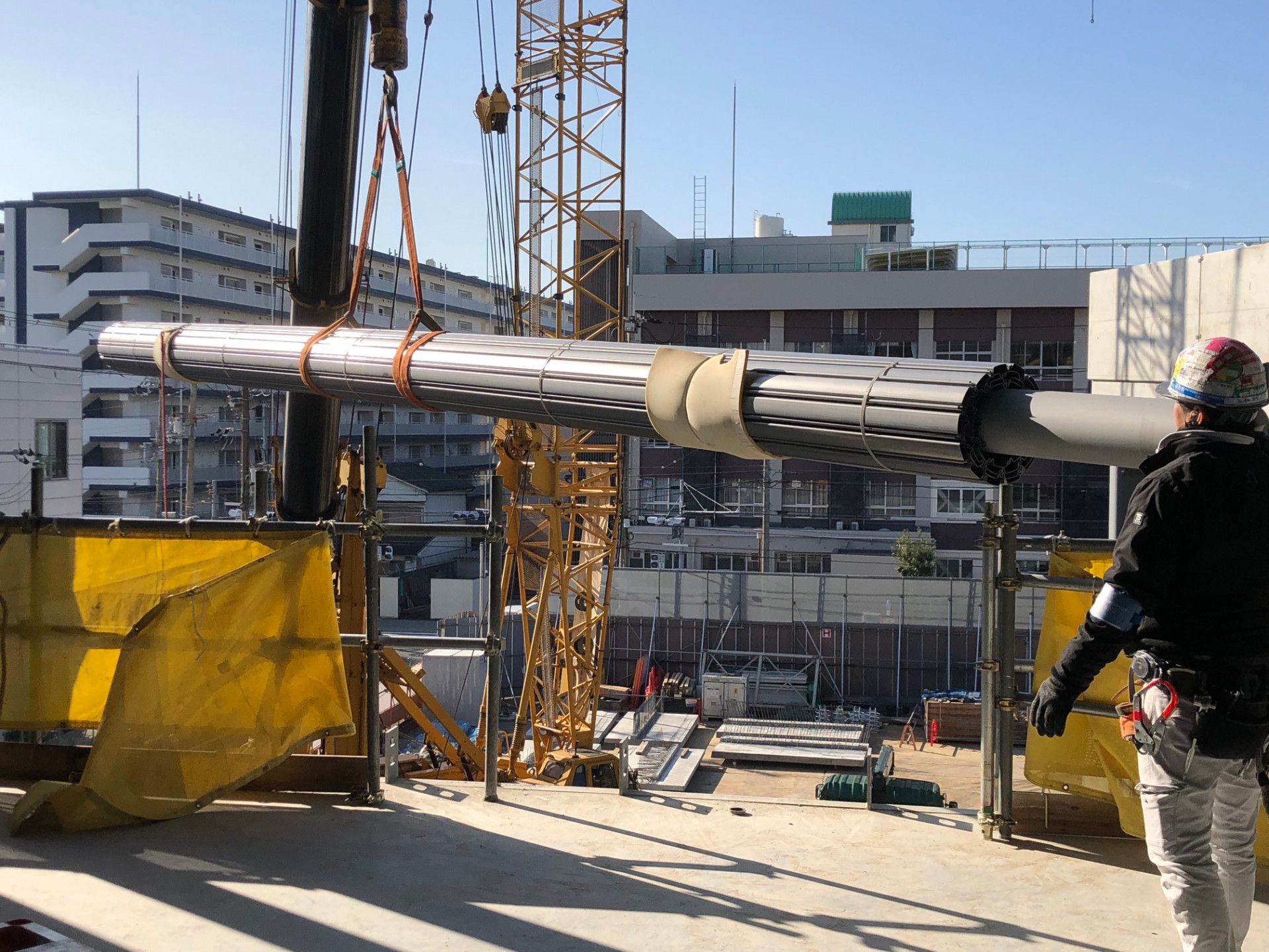長尺重量物荷揚げ。